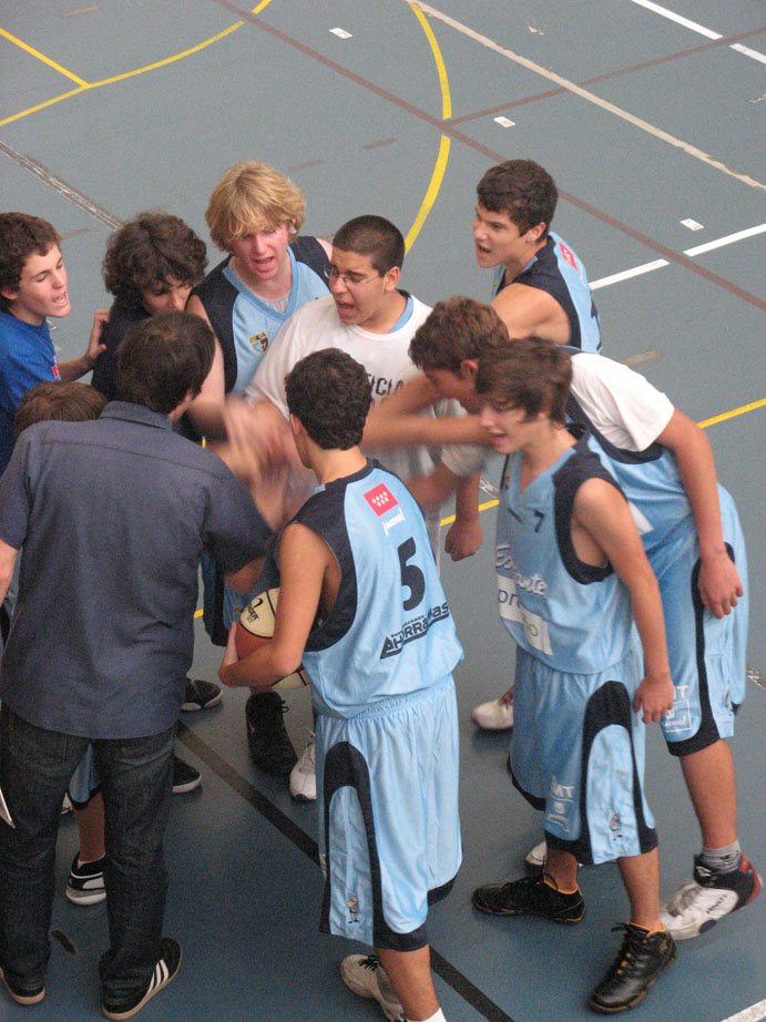 Había nervios, y tensión. Las cosas no funcionaban del todo bien, y habían llegado las precipitaciones (tiros sin rebotes, contrataques alocados y sin apoyos, lagunas defensivas). También los reproches por determinadas jugadas. Situaciones para olvidar. La charla se dirigió a recuperar la confianza en nuestro juego, en nuestros compañeros, y en tener más cabeza.