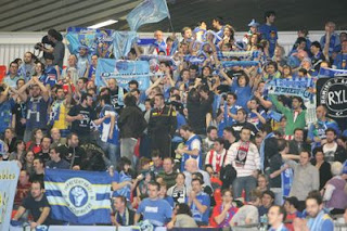 Aquí la realidad es muy distinta. La cita para ir a jugar un partido fuera de casa hay que organizarla con los padres de los jugadores. La caravana suele salir del Ramiro de Maeztu (en nuestro caso) y seguir al que tenga más claro la forma de ir al pabellón de juego. No hay cheerleaders (afortunadamente), y casi nunca viene alguien 'externo' a vernos jugar. Ni siquiera los frikis del instituto.